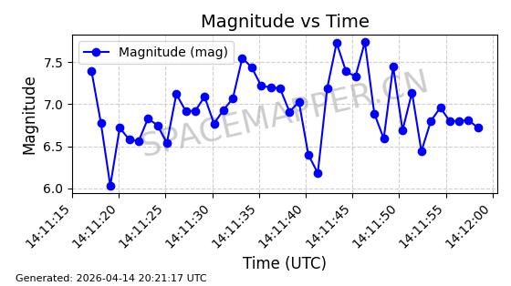 | 在轨 | 95minutes | 53.2176 | 538.88 | 540.642 | 0.0001273 | 2026-04-14 06:59:14 |  | |