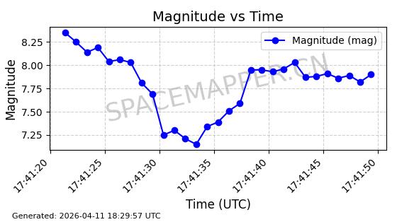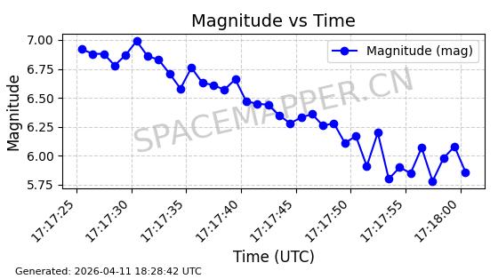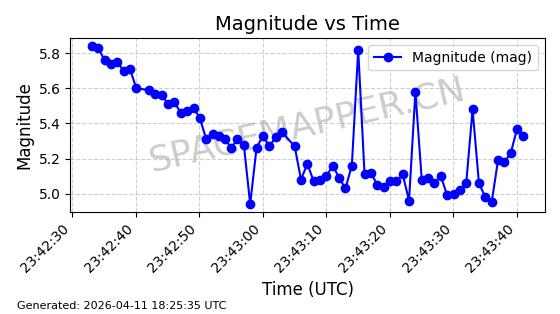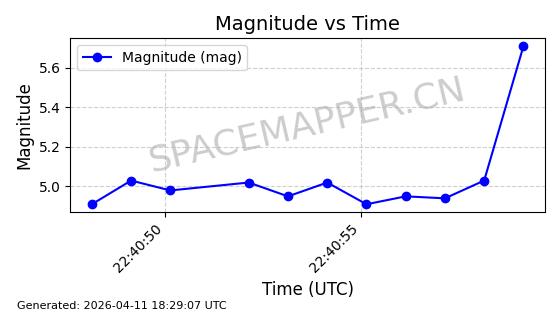 | 在轨 | 95minutes | 53.2157 | 538.804 | 540.7 | 0.0001369 | 2026-04-11 00:12:20 |  | |