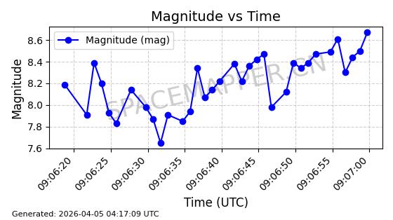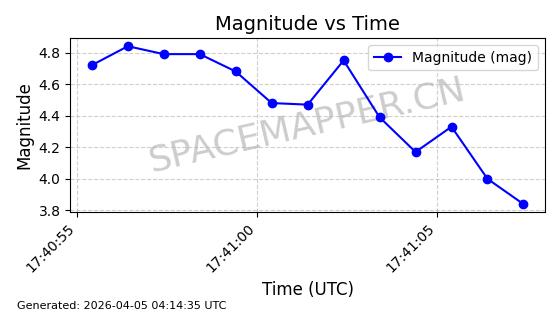 | 在轨 | 100minutes | 86.3950 | 769.701 | 772.411 | 0.0001895 | 2026-04-05 03:09:20 |  | |