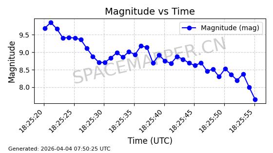 | 在轨 | 100minutes | 86.3910 | 776.02 | 779.316 | 0.0002303 | 2026-04-05 05:01:26 |  | |