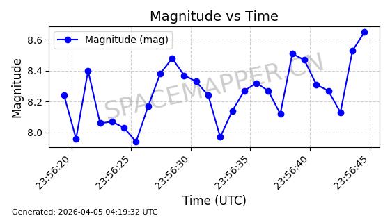 | 在轨 | 100minutes | 86.3963 | 776.052 | 779.278 | 0.0002253 | 2026-04-05 03:01:15 |  | |
