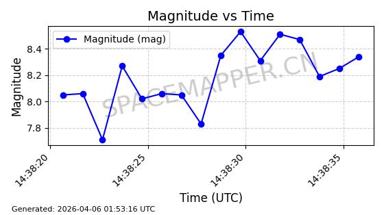 | 在轨 | 100minutes | 86.3933 | 776.224 | 779.112 | 0.0002017 | 2026-04-05 02:58:30 |  | |
