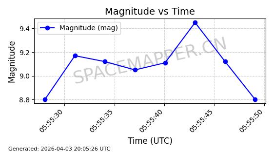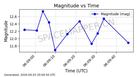 | 在轨 | 1454minutes | 10.0900 | 36056.34 | 36226.82 | 0.0020047 | 2026-04-03 05:41:42 |  | |