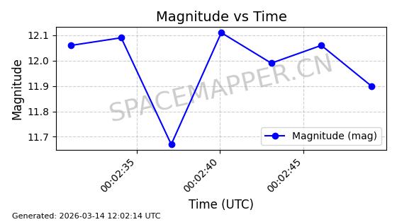 | 在轨 | 773minutes | 54.1816 | 21505.017 | 21551.727 | 0.0008369 | 2026-03-12 06:09:13 |  | |