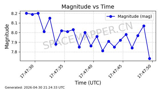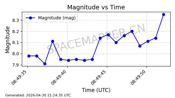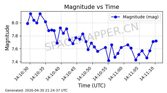 | 在轨 | 97minutes | 49.9815 | 610.258 | 628.23 | 0.0012841 | 2026-04-30 02:49:52 |  | |