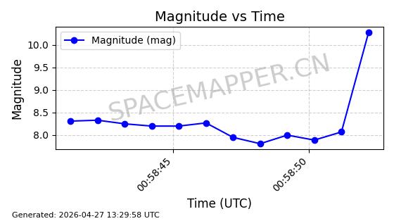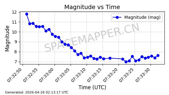 | 在轨 | 97minutes | 49.9853 | 610.708 | 622.602 | 0.0008501 | 2026-04-29 18:40:19 |  | |