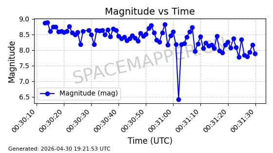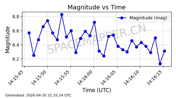 | 在轨 | 97minutes | 49.9931 | 612.67 | 620.404 | 0.0005528 | 2026-04-30 03:33:37 |  | |