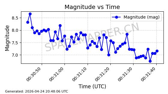 | 在轨 | 97minutes | 50.0048 | 601.501 | 649.629 | 0.0034358 | 2026-04-30 02:40:51 |  | |