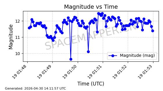 在轨 1449minutes 14.2793 36008.199 36052.967 0.0005278 2026-04-28