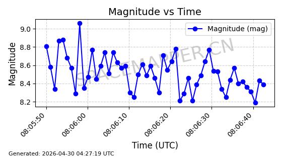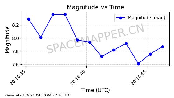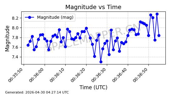| 在轨 | 105minutes | 82.9225 | 974.216 | 1013.286 | 0.0026498 | 2026-04-28 05:04:49 |  | |