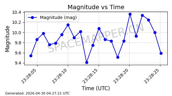 | 在轨 | 105minutes | 82.9318 | 963.965 | 1010.927 | 0.0031878 | 2026-04-28 07:48:00 |  | |