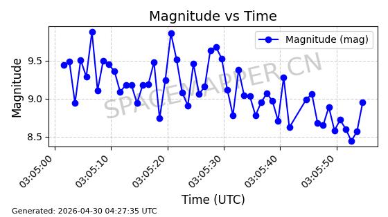 | 在轨 | 105minutes | 82.9140 | 951.816 | 1007.81 | 0.0038050 | 2026-04-28 06:50:12 |  | |