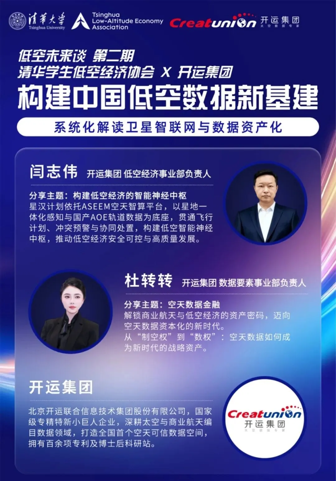 11月20日,北京开运联合信息技术集团股份有限公司(以下简称“开运集团”)与清华大学学生低空经济协会联合开展《低空未来谈:构建中国低空数据新基建》线上访谈。