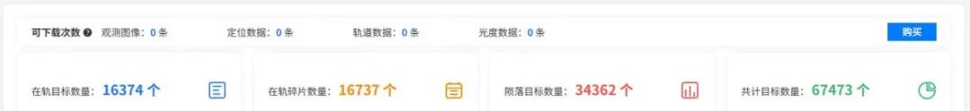先来看一组核心宏观数据:当前近地轨道在轨目标数量达16374个,在轨碎片数量16737个,陨落目标数量34362个,三者合计目标数量为67473个。