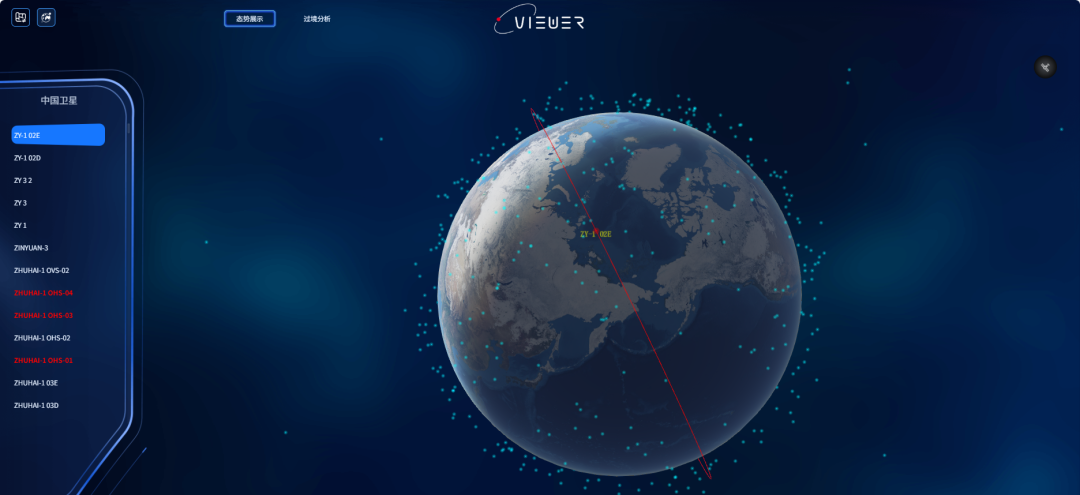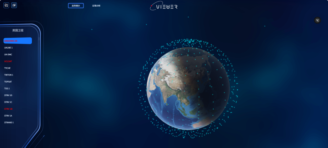 在浏览器输入太空地图网址(https://spacemapper.cn),选择顶部导航栏中的“卫星”,向下滑动至“按国家选择卫星”: