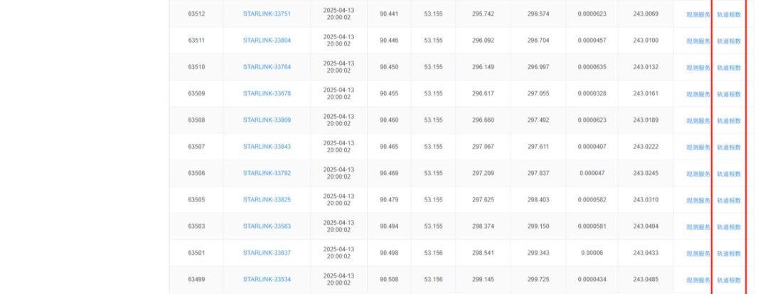 点击右侧的轨道根数即可查询对应卫星轨道数据: