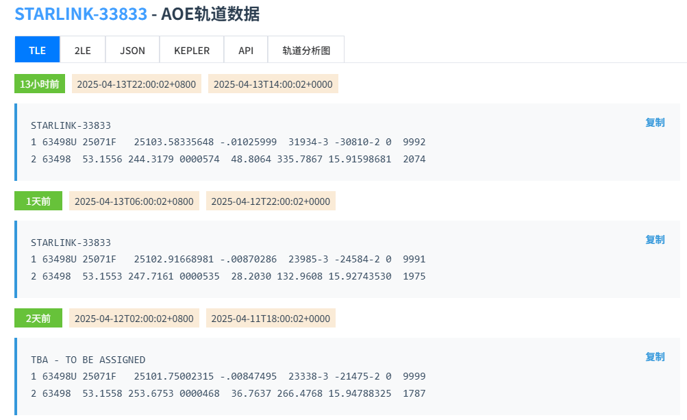 太空数据 | SpaceX第2025-071批27颗星链卫星轨道数据