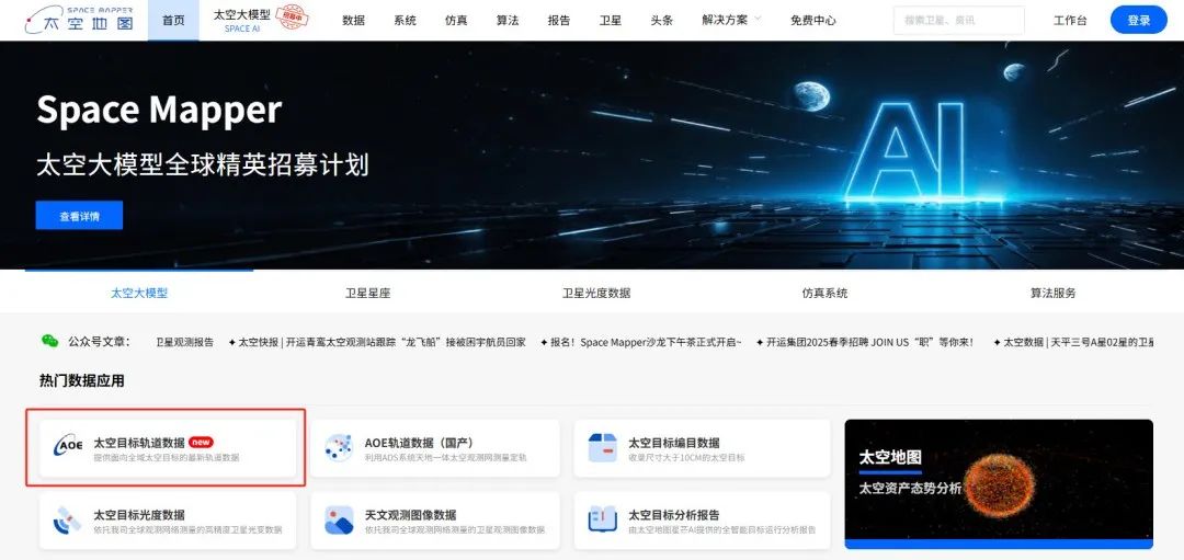 打开太空地图(https://spacemapper.cn),点击太空目标轨道数据;