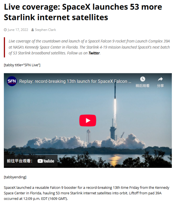 1. 发射相关报道