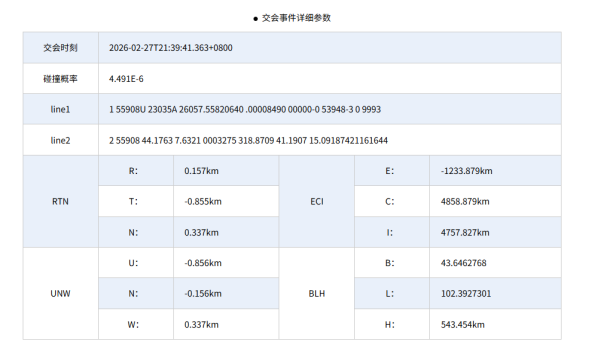 说明:以下交会信息基于SGP4轨道计算模型运算得出。