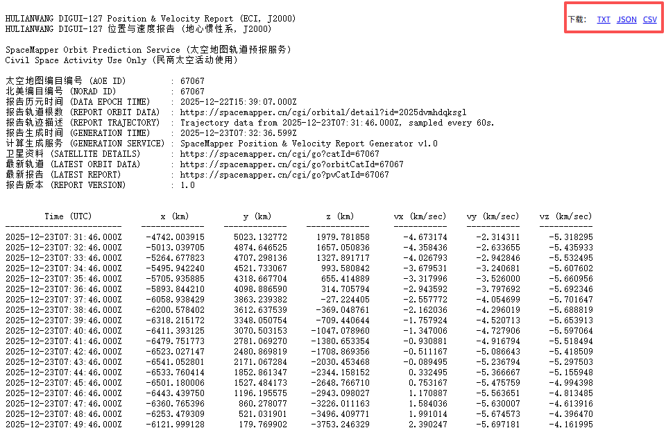 国网星座卫星轨道数据