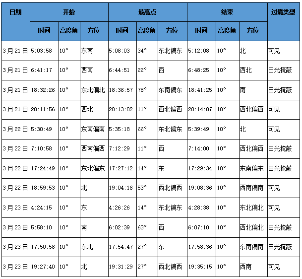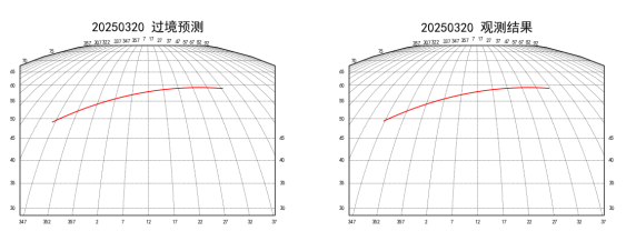 过境信息依据aseem.cn轨道数据库和aseem.cn观测网观测数据库分析目标未来三天经过观测站的天域过境情况。