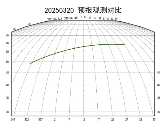 观测弧段长:实际观测时,设备有一定时间的提前量在升起位置等待,会出现观测的初始位置轨迹长于预期观测轨迹。