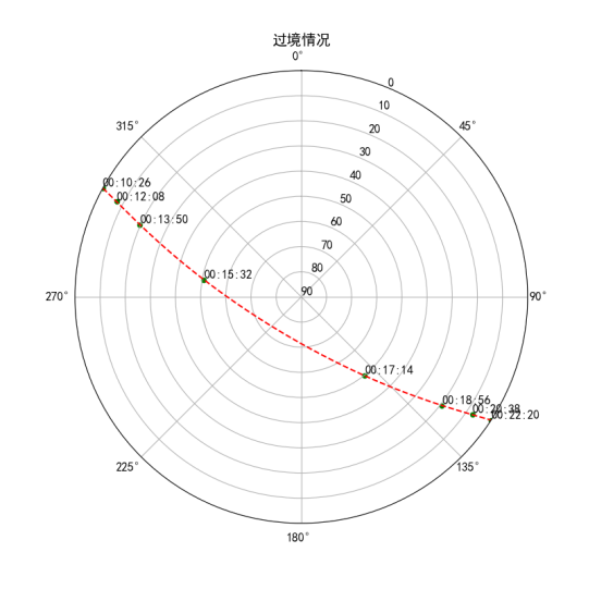 1)观测弧段长:实际观测时,设备有一定时间的提前量在升起位置等待,会出现观测的初始位置轨迹长于预期观测轨迹。