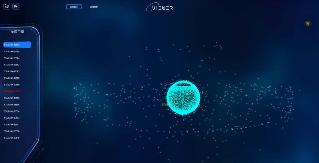 在浏览器输入太空地图网址(https://spacemapper.cn),选择顶部导航栏中的“卫星”,向下滑动至“按国家选择卫星”: