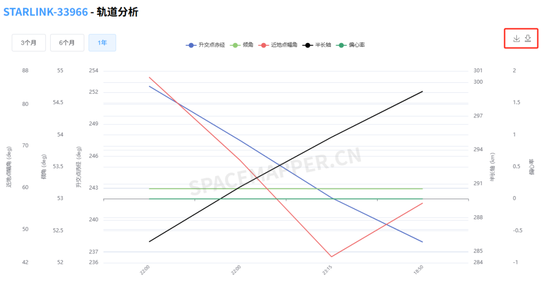 在太空地图平台上,可查看AOE轨道数据生成的多种轨道分析图表,如轨道高度分析图可帮助卫星运营商捕捉轨道异常漂移问题。基于AOE数据的三维仿真系统能高精度还原卫星运行轨迹,支持动态展示轨道高度、倾角及远/近地点变化趋势。