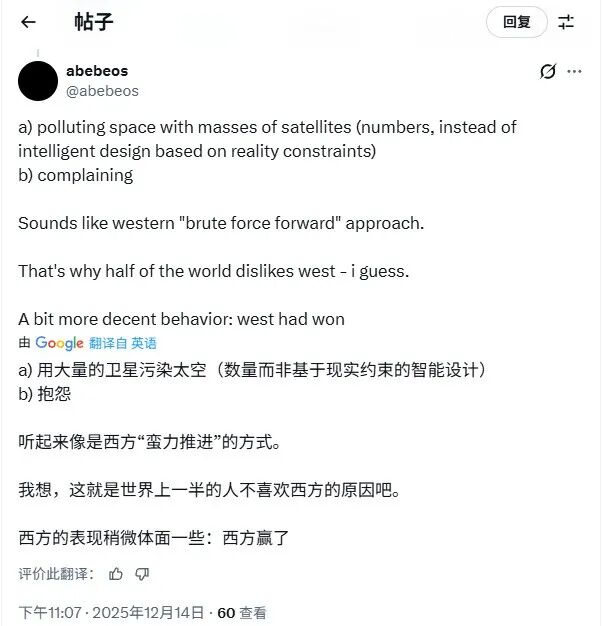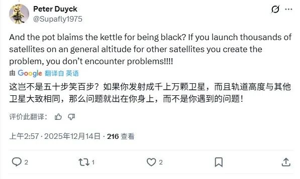 核心原因是“利益相关”。截至2025年11月,全球在轨活跃卫星约为1.6万颗,其中星链就占了1万多颗,超过六成份额。