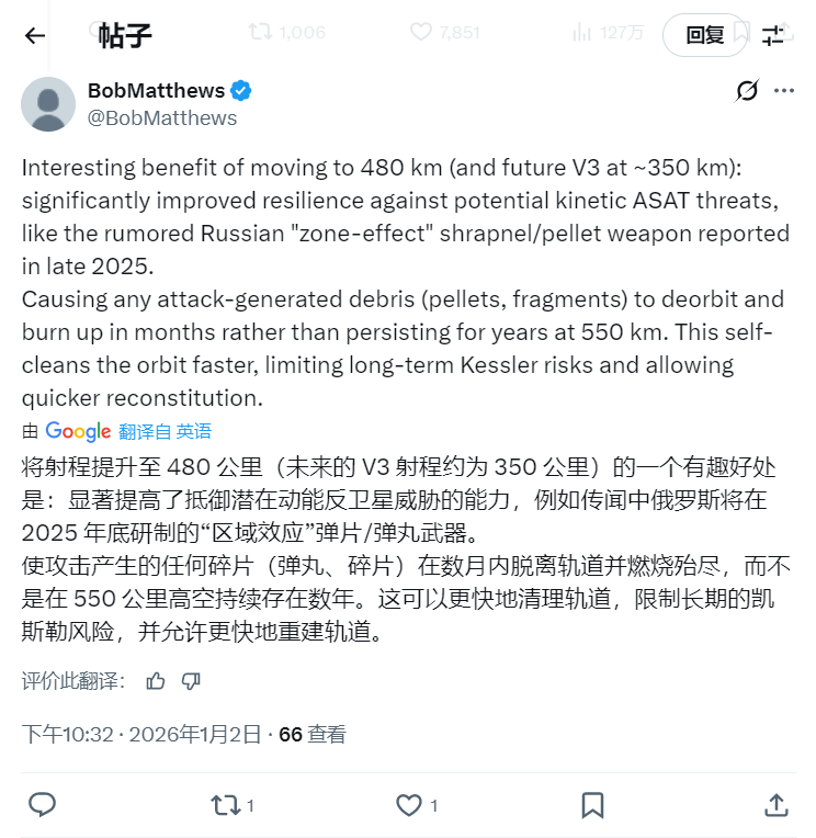 一是规避碰撞风险,2025年和中国卫星的近距离接触闹得沸沸扬扬,加上自身卫星数量多、变轨频繁,碰撞风险持续攀升,降轨能与部分航天器拉开距离;