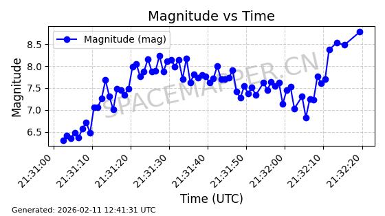 | QIANFAN-69 | 62799 | 62799 | 2025-01-23 同日期轨道 2025-016Q 同批次轨道 | 在轨 | 107分钟 | 88.9693 | 1055.842 | 1081.38 | 0.0017146 | 2026-02-16 05:51:46 | ![]() | |