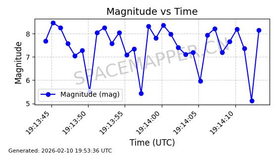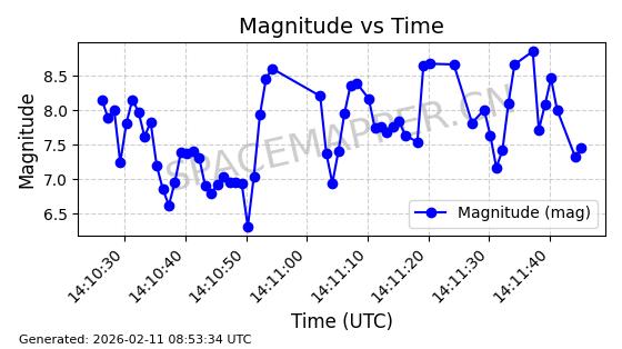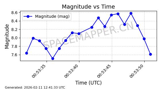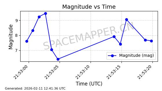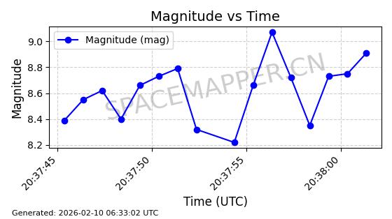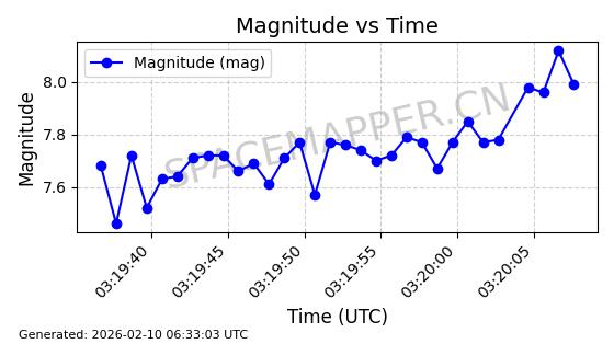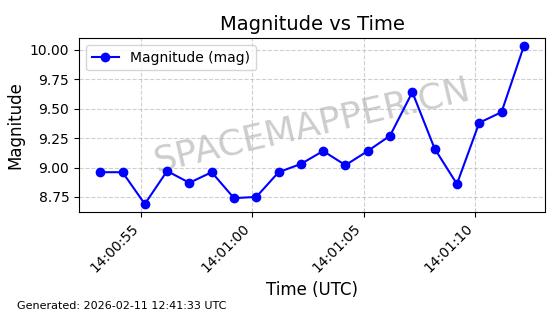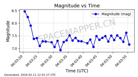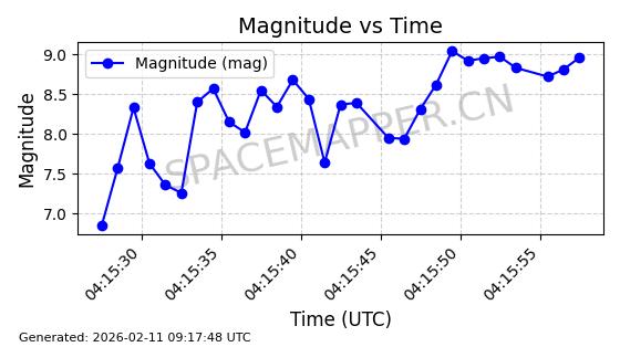 | QIANFAN-91 | 66033 | 66033 | 2025-10-17 同日期轨道 2025-233A 同批次轨道 | 在轨 | 107分钟 | 88.9910 | 1067.289 | 1069.931 | 0.0001773 | 2026-02-16 04:31:33 | ![]() | |