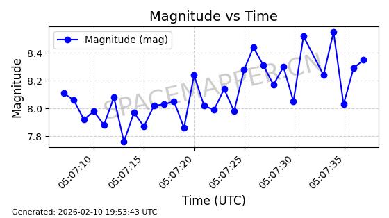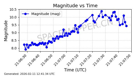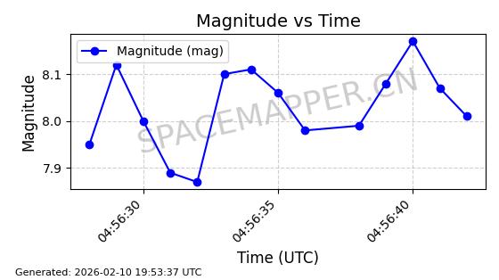 | QIANFAN-102 | 66044 | 66044 | 2025-10-17 同日期轨道 2025-233M 同批次轨道 | 在轨 | 107分钟 | 88.9916 | 1066.77 | 1069.856 | 0.0002072 | 2026-02-16 05:36:24 | ![]() | |