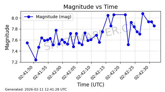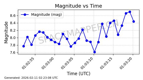 | QIANFAN-64 | 62794 | 62794 | 2025-01-23 同日期轨道 2025-016K 同批次轨道 | 在轨 | 107分钟 | 88.9705 | 1057.049 | 1080.175 | 0.0015527 | 2026-02-16 04:58:26 | ![]() | |