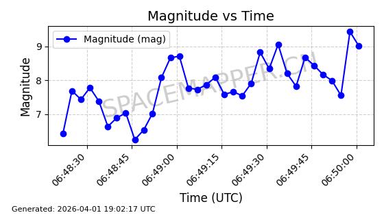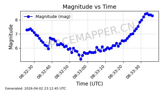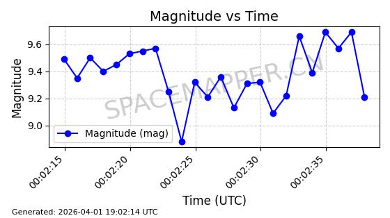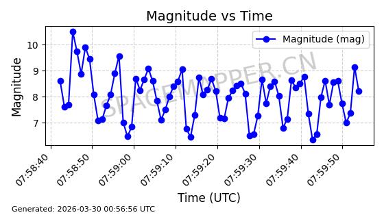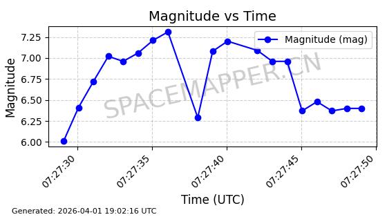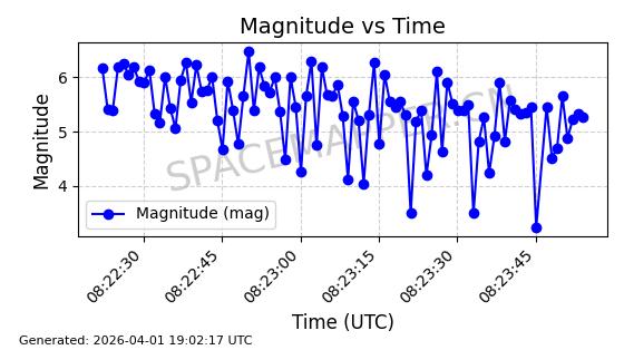 | QIANFAN-61 | 62791 | 62791 | 2025-01-23 同日期轨道 2025-016G 同批次轨道 | 在轨 | 107分钟 | 88.9727 | 1056.812 | 1080.302 | 0.0015771 | 2026-04-02 05:48:09 | ![]() | |