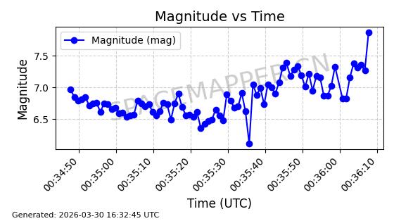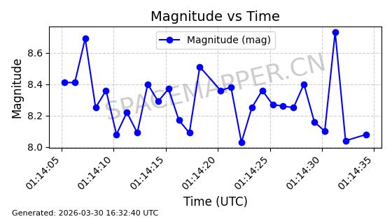 | 卫星名称 | AOE ID | NORAD ID | 发射日期 国际编号 | 在轨状态 | 轨道周期 | 轨道倾角 (度) | 近地点 (Km) | 远地点 (Km) | 偏心率 | 更新时间 (UTC) | 近期光变曲线 | 服务 |