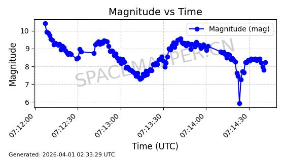 | QIANFAN-100 | 66042 | 66042 | 2025-10-17 同日期轨道 2025-233K 同批次轨道 | 在轨 | 107分钟 | 88.9997 | 1066.804 | 1070.294 | 0.0002343 | 2026-04-02 07:37:24 | ![]() |