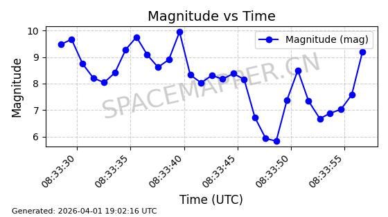 | QIANFAN-33 | 61566 | 61566 | 2024-10-15 同日期轨道 2024-185Q 同批次轨道 | 在轨 | 103分钟 | 88.9772 | 900.349 | 910.507 | 0.0006973 | 2026-04-02 07:29:50 | ||