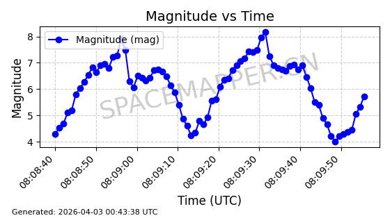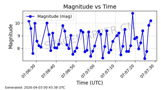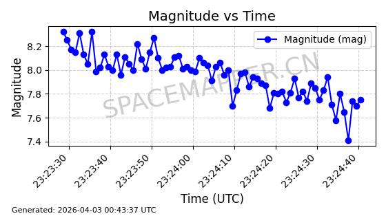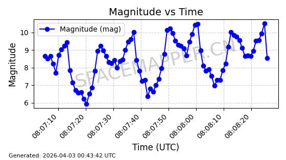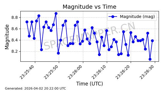 | QIANFAN-93 | 66035 | 66035 | 2025-10-17 同日期轨道 2025-233C 同批次轨道 | 在轨 | 107分钟 | 88.9990 | 1066.81 | 1070.294 | 0.0002338 | 2026-04-02 07:25:34 | ![]() | |