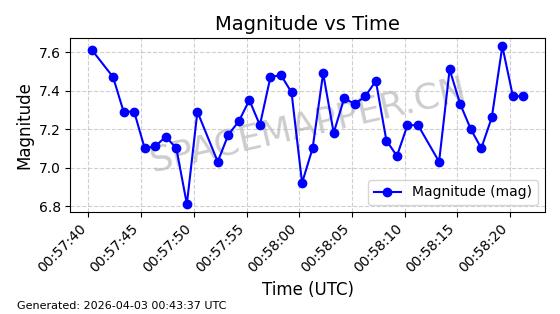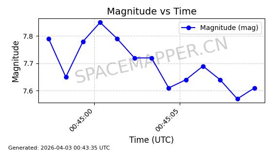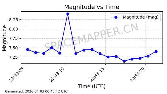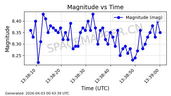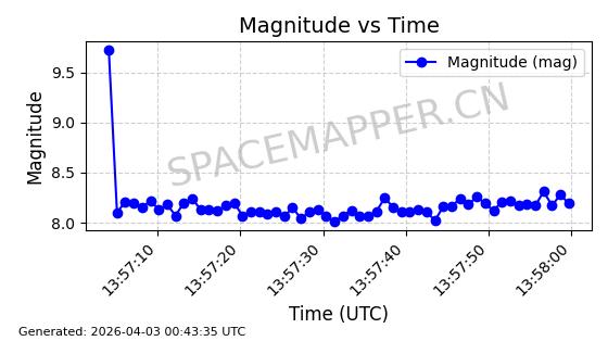 | QIANFAN-97 | 66039 | 66039 | 2025-10-17 同日期轨道 2025-233G 同批次轨道 | 在轨 | 107分钟 | 88.9985 | 1066.785 | 1070.327 | 0.0002378 | 2026-04-02 07:31:34 | ![]() | |