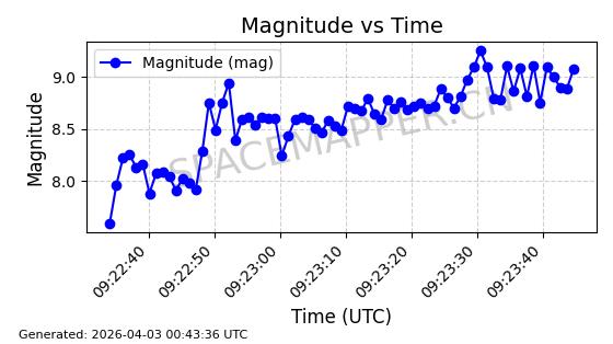 | QIANFAN-79 | 63165 | 63165 | 2025-03-11 同日期轨道 2025-046G 同批次轨道 | 在轨 | 107分钟 | 88.9714 | 1057.359 | 1079.807 | 0.0015072 | 2026-04-02 05:15:47 | ![]() | |