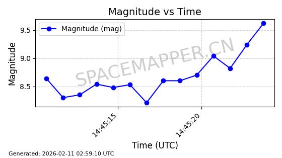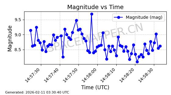 | TIANQI 17 | 64059 | 64059 | 2025-05-19 同日期轨道 2025-105B 同批次轨道 | 在轨 | 103分钟 | 44.9787 | 889.062 | 904.734 | 0.0010771 | 2026-02-16 06:06:04 | ![]() | |