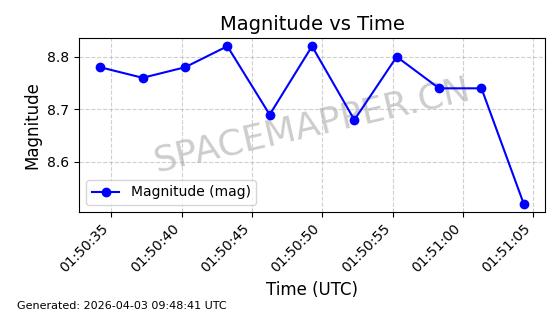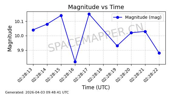 | TIANQI 17 | 64059 | 64059 | 2025-05-19 同日期轨道 2025-105B 同批次轨道 | 在轨 | 103分钟 | 44.9819 | 888.927 | 904.711 | 0.0010848 | 2026-04-02 04:03:31 | ![]() | |