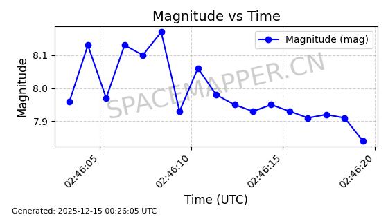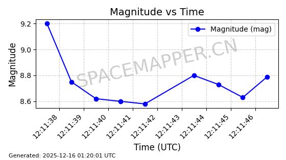 | STARLINK-1010 | 44716 | 44716 | 2019-11-11 同日期轨道 2019-074D 同批次轨道 | 已陨落 | 88分钟 | 53.0263 | 152.846 | 154.87 | 0.0001548 | 2025-11-15 09:04:47 | ||