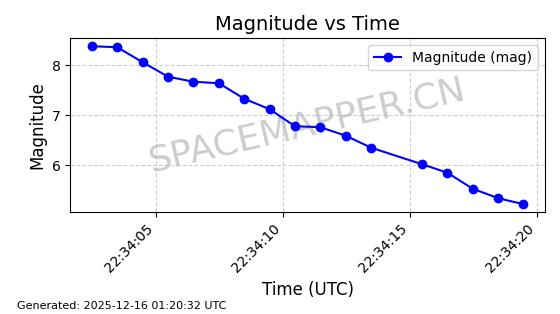| STARLINK-11111 | 59764 | 59764 | 2024-05-14 同日期轨道 2024-091M 同批次轨道 | 在轨 | 92分钟 | 53.1596 | 359.317 | 360.383 | 0.0000791 | 2025-12-13 23:06:02 | ||