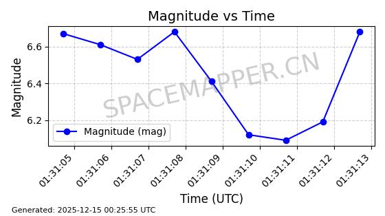 | STARLINK-11113 | 59947 | 59947 | 2024-06-05 同日期轨道 2024-107C 同批次轨道 | 在轨 | 92分钟 | 53.1593 | 359.114 | 360.42 | 0.0000969 | 2025-12-13 15:01:08 | ||