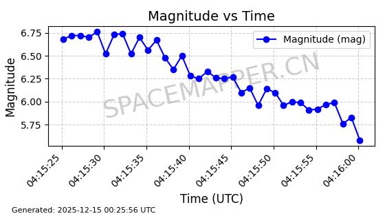| STARLINK-11090 | 59422 | 59422 | 2024-04-07 同日期轨道 2024-065B 同批次轨道 | 在轨 | 92分钟 | 53.1585 | 359.293 | 360.421 | 0.0000836 | 2025-12-13 17:40:49 | ||