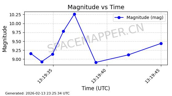 | STARLINK-1021 | 44726 | 44726 | 2019-11-11 同日期轨道 2019-074P 同批次轨道 | 已陨落 | 88分钟 | 53.0257 | 153.049 | 158.077 | 0.0003847 | 2025-10-11 07:57:54 | ||